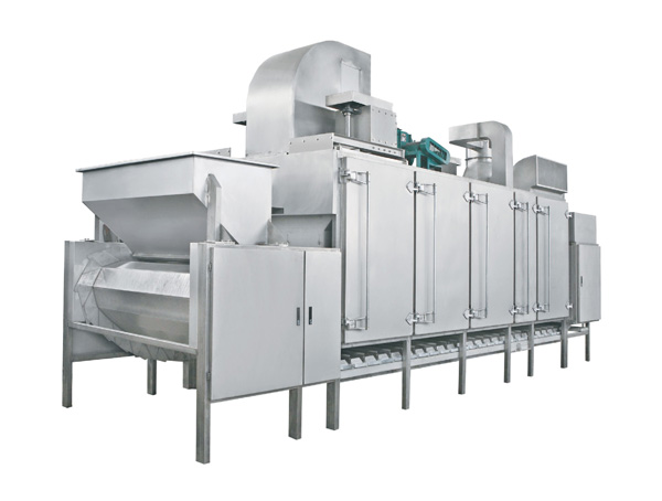 該烤爐采用循環熱風方式進行穿(chuān)透式烘烤;烘烤過程物料厚度、行進速度自動可調,連續進出;烘烤溫度單(dān)元式控製,可實現各單元溫度獨立調(diào)整;後置獨立冷卻(què)區,無需單獨冷卻;模塊式結構,產量提高亦無須變更設備;熱源多元化(huà),可使(shǐ)用天然氣、液化氣、導熱(rè)油、電等。本機以其結構及性能的優越特點,為堅果(guǒ)炒貨行業提供了一機多用,產(chǎn)品(pǐn)質量穩定的理想設備,主要可加工的產品有五香花生米、乳白花生(shēng)米、磨醬米、巴旦木、腰果、蕎麥等各種(zhǒng)顆粒類食品。
